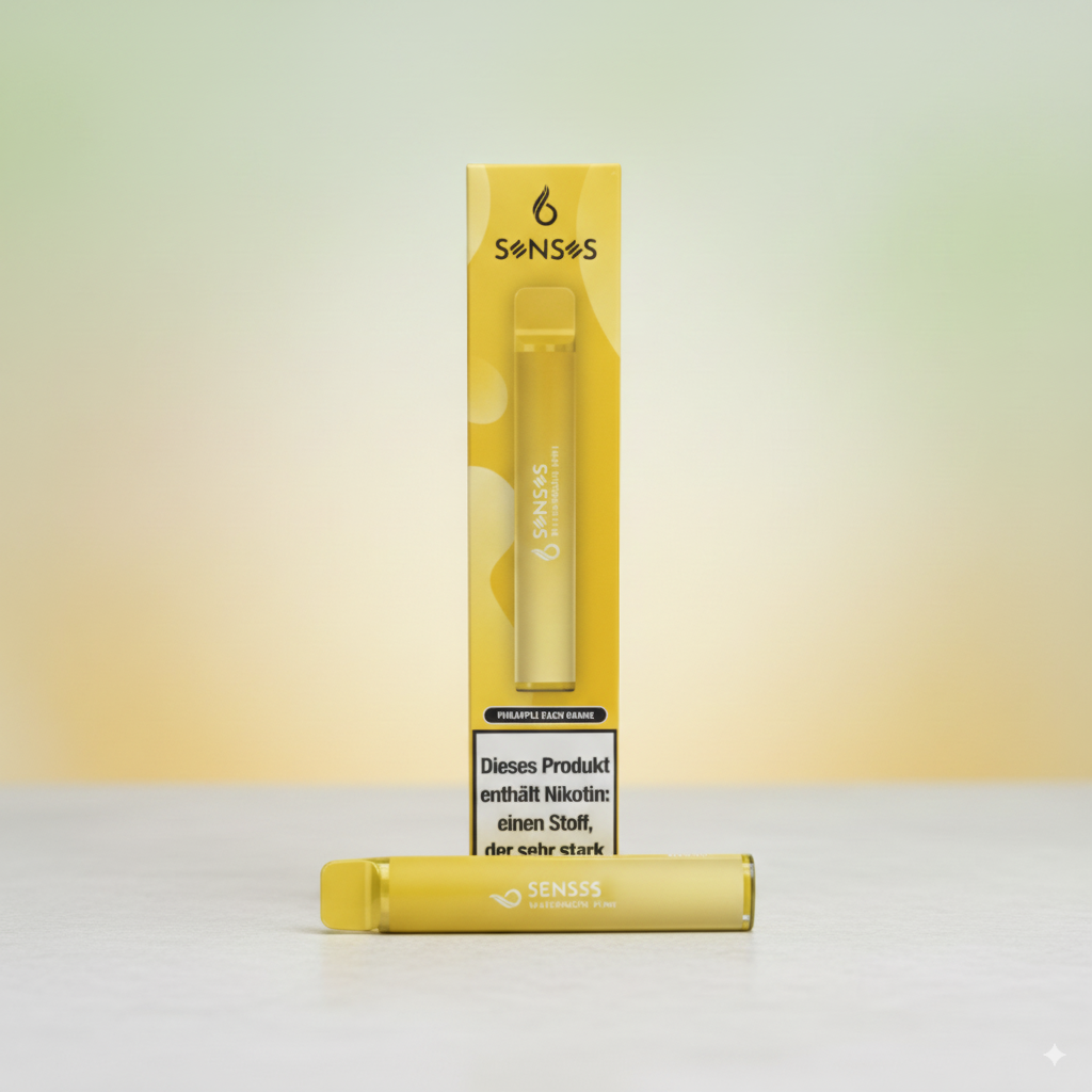 6 SENSES Bar Mini 600 Züge Geschmack: Ananas Pfirsich Mango Kapazität: 2.0 ml Liquid Nikotinsalz: 2% Akku: 550mAh Zutaten: Pflanzliches Glycerin, Propylenglykol, Nikotin, natürliche und künstliche Aromen