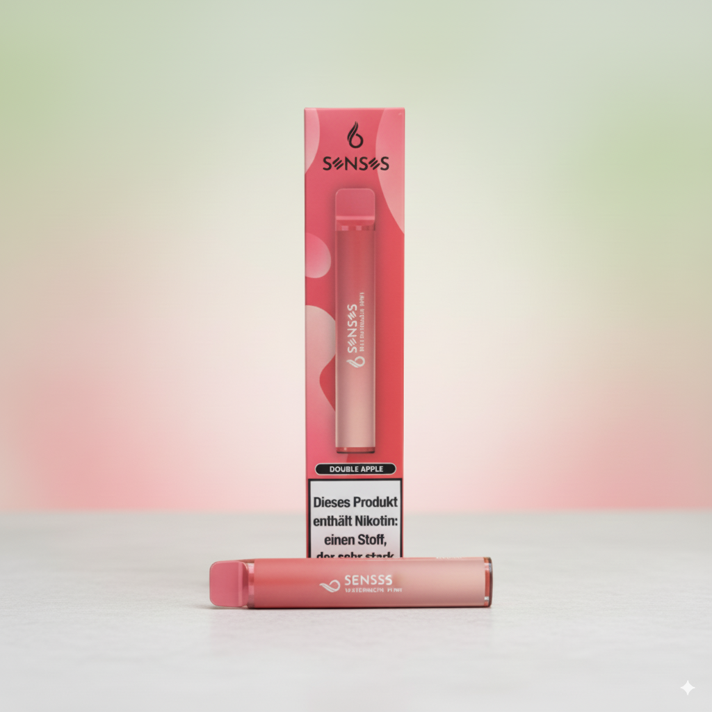 6 SENSES Bar Mini 600 Züge Geschmack: Doppel Apfel Kapazität: 2.0 ml Liquid Nikotinsalz: 2% Akku: 550mAh Zutaten: Pflanzliches Glycerin, Propylenglykol, Nikotin, natürliche und künstliche Aromen